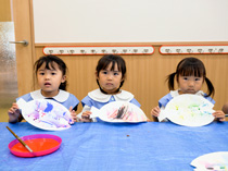 様々な素材を使用し作品作りに取り組みます。子どもたちの個性を大切にしながら、色々な技法を経験し、創造力、発想力を育てます。また手先をたくさん使う作業は巧緻性を養います。子どもが感じる「楽しい!」という気持ちを大事にし、作品に対する想いを共有する事で、自信をつけると同時に、思いやりの気持ちも育ちます。