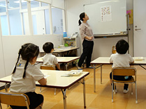 身体と五感すべてを使って行う授業です。身体を使うのは体操だけではありません。書く、描く、折る、切る、貼る、これらは身体(腕、手、指など)を使ってこそできることです。絵を描く、工作する、話をする、生活習慣を確認する、仲間と一緒に課題に取り組む。どれも入試には必須のものです。目で見ることだけが頼りであった時代から、目の前にはなくても、それをイメージし、自らの体験に置き換えて表現ができる様になる授業です。